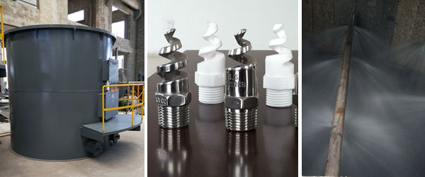 噴淋組件及噴嘴的布置設(shè)計成均勻覆蓋吸收塔的橫截面。噴嘴為316L螺旋噴嘴。